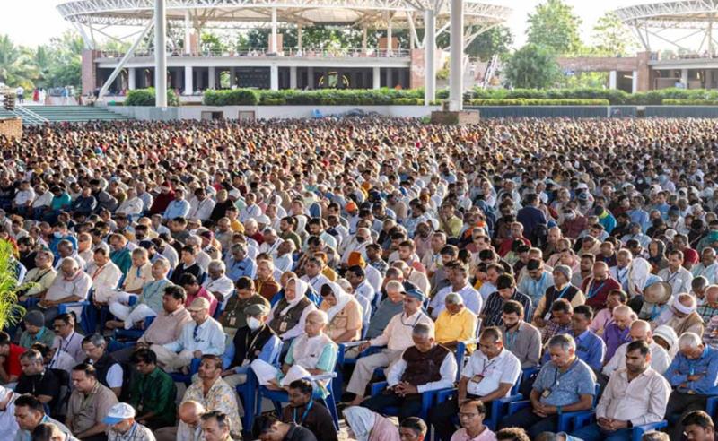 (Praticantes da meditação Heartfulness, no Ashram de Kanha Shanti Vanam, em Hyderabad, Índia. Crédito: Heartfulness Institute)