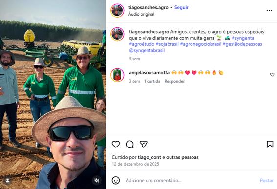 Além do trabalho prático no agro, Tiago Sanches também se destaca pela presença digital e profissional, utilizando as redes sociais como ferramentas de troca de conhecimento, networking e fortalecimento do ecossistema agrícola. Seu perfil no LinkedIn tornou-se um canal relevante para compartilhar experiências, tendências do setor, inovação tecnológica e boas práticas de manejo, conectando produtores, técnicos, consultores e empresas do agronegócio.