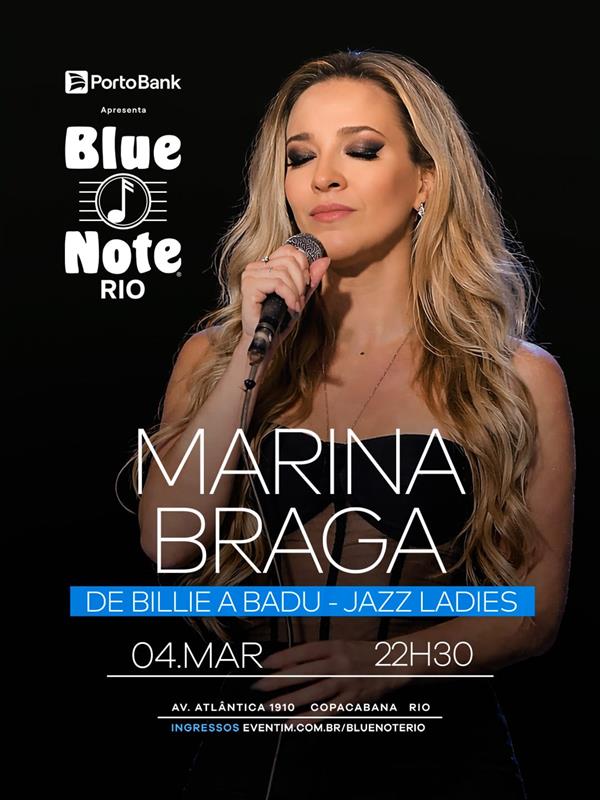 Entrada: de R$ 60 a R$ 120, vendas pelo site https://www.eventim.com.br/artist/blue-note-rio/marina-braga-de-billie-a-badu-jazz-ladies-4074914/