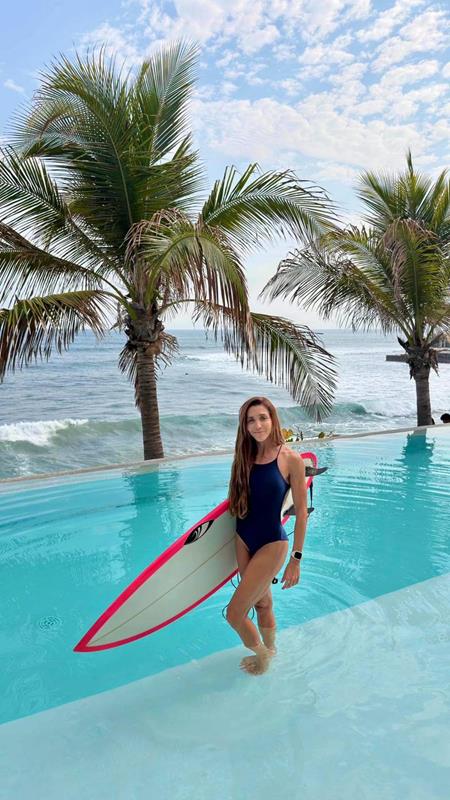 Tayane Dalazen desembarca em Punta Roca, em El Salvador, para dias de surf e descanso